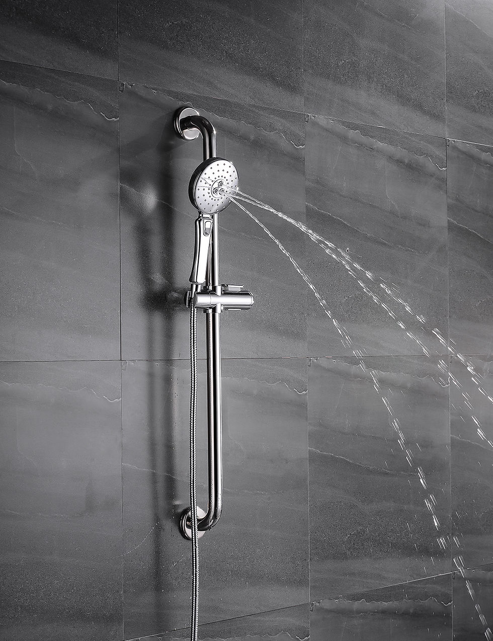 Handicap Grab Bar Sliding Rail With 5 Setting Handheld Shower Head